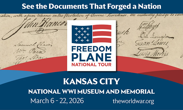The Freedom Plane National Tour is made possible in part by the National Archives Foundation, through the generous support of The Boeing Company, Comcast Corporation, Microsoft, and P&G. The exhibition at the Museum and Memorial is supported by Presenting Sponsor America 250 Missouri Commission and Premier Sponsor E&K.